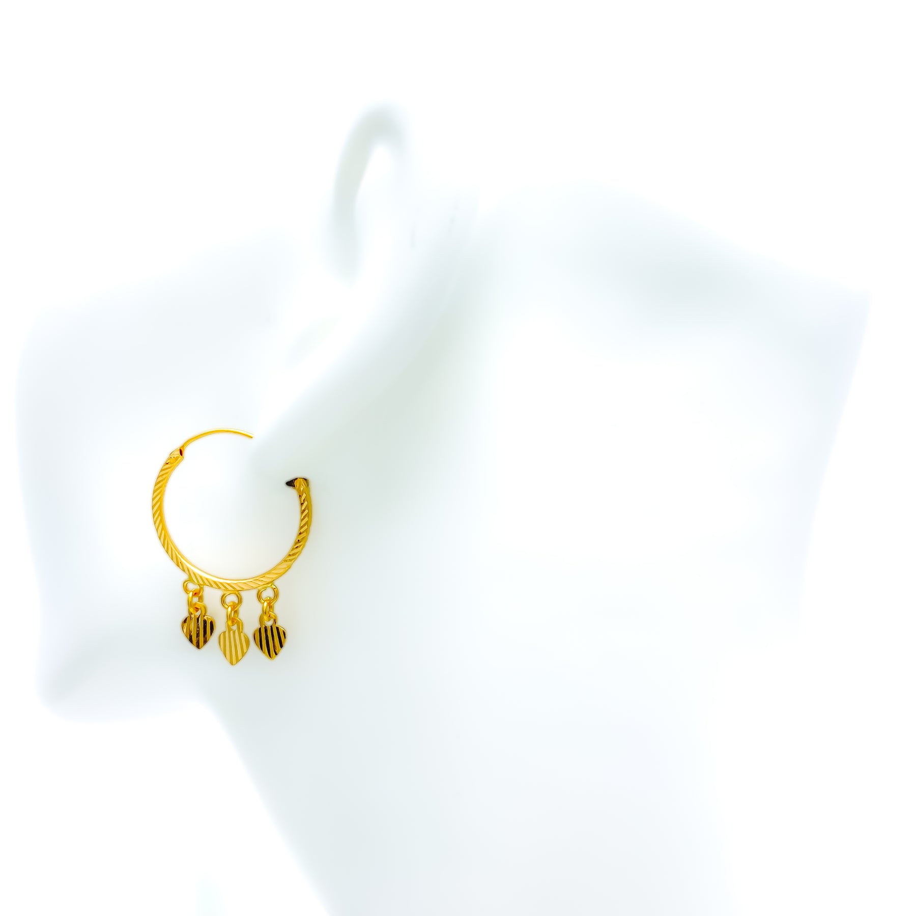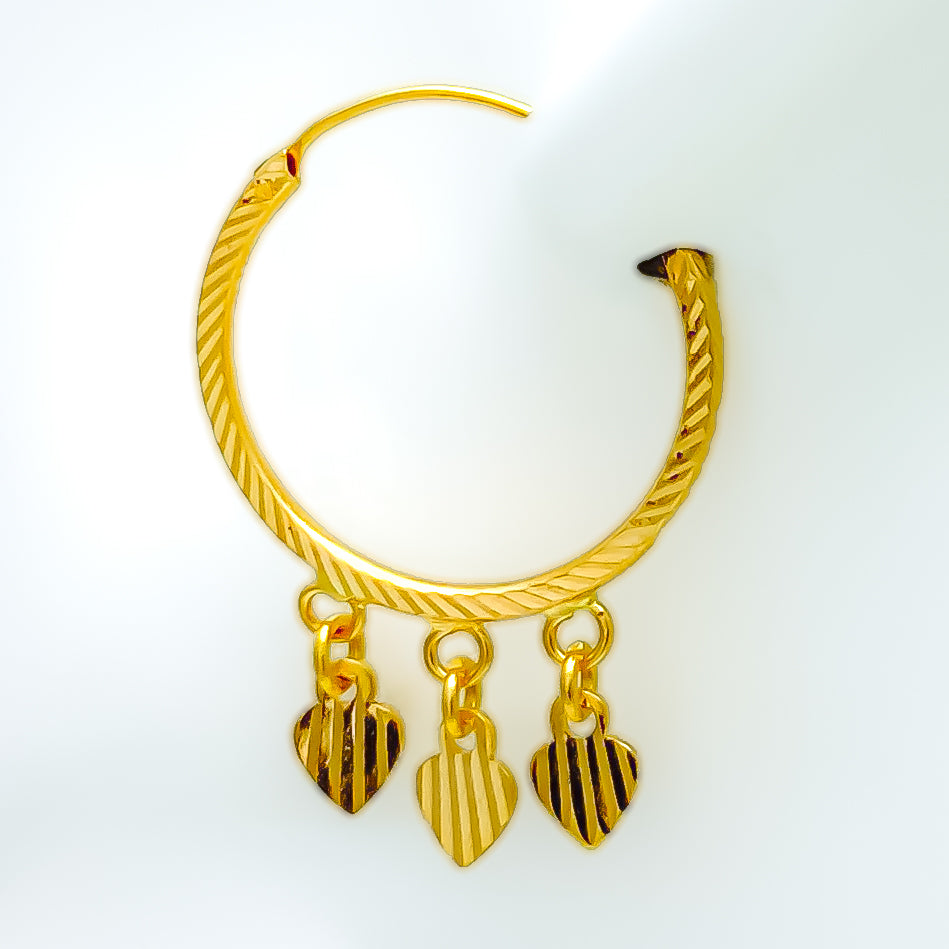 Crafted for refined brilliance, these 22k yellow gold Bali earrings weigh 4.9 grams and feature a 1-inch diameter paired with a 1.4-inch length. The glistening polished finish enhances their classic hoop structure, offering a look that's both sleek and dignified. Ideal for adding understated luxury to everyday ensembles or completing a polished formal outfit, this pair blends traditional craftsmanship with dapper sophistication.
