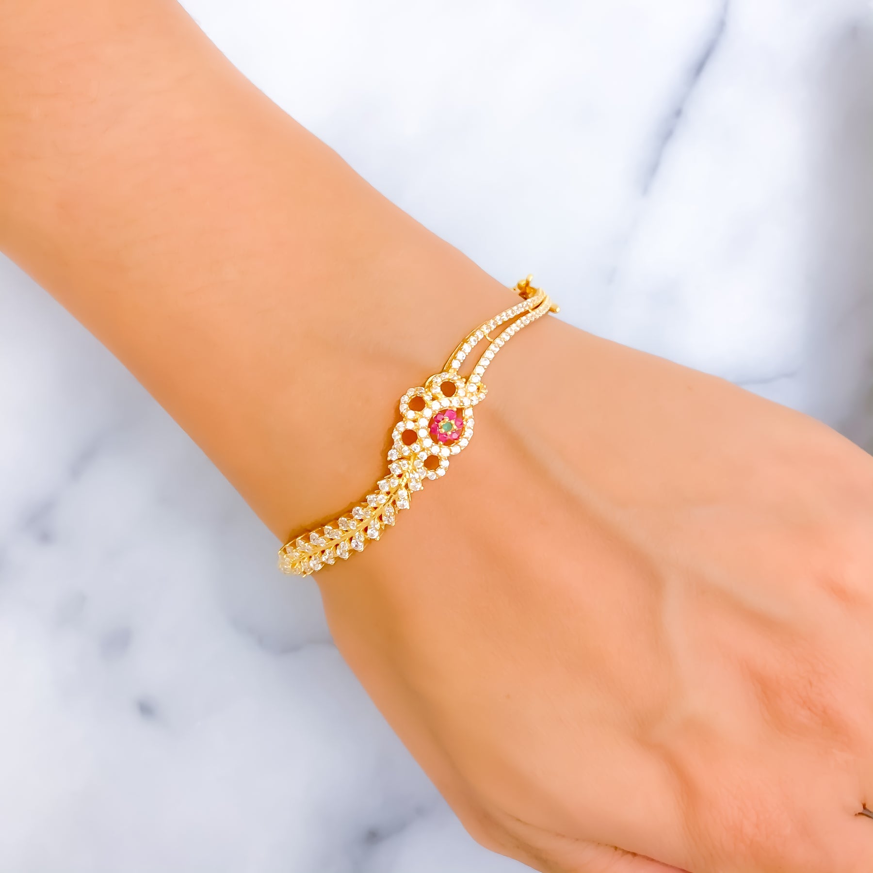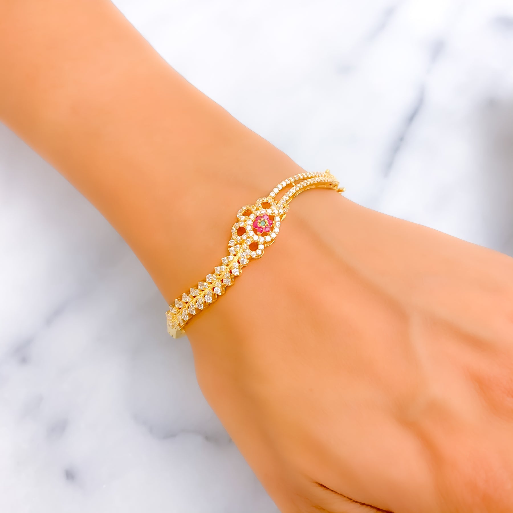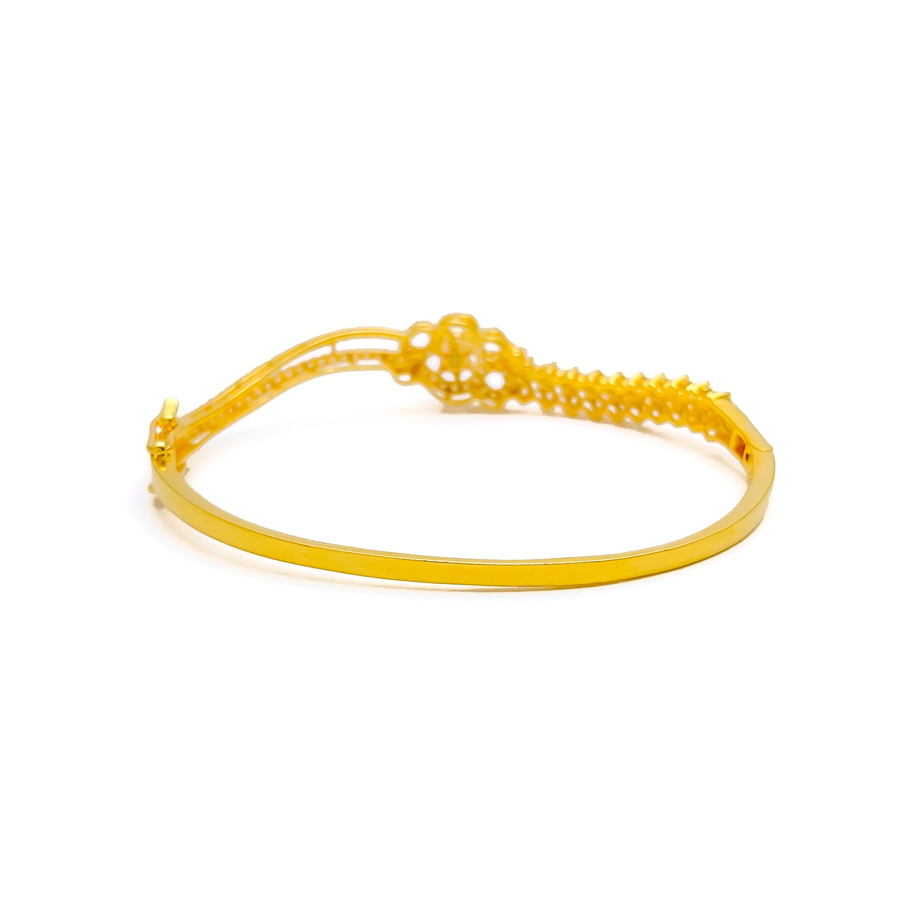 Glistening Floral 22k Gold CZ Bangle Bracelet