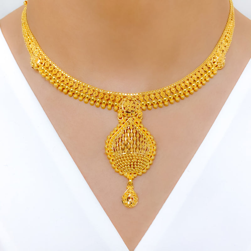 Refined Glamorous 22k Gold Ornate Necklace Set